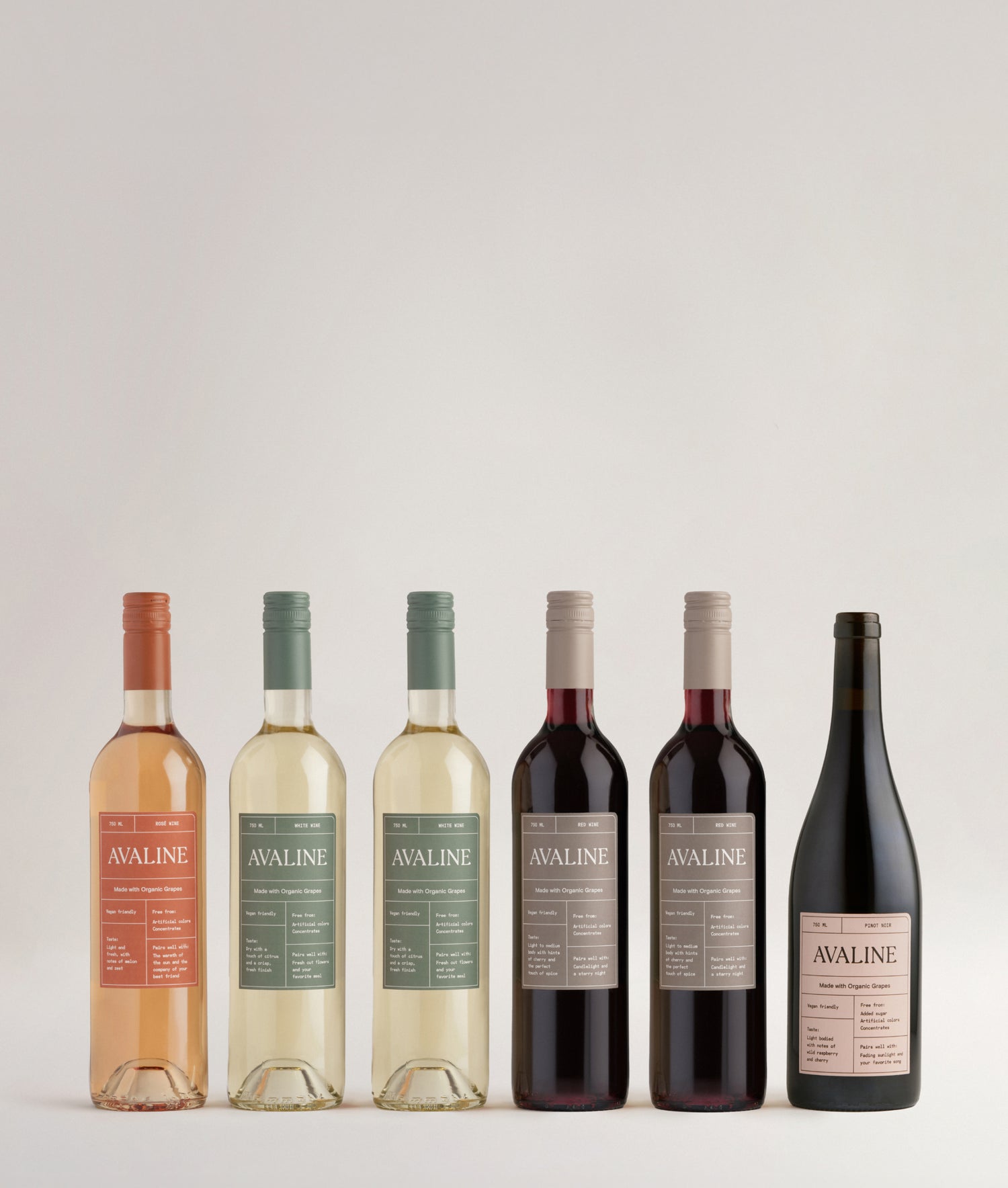 Our wines are made with simple, carefully considered ingredients— never any added colors, concentrates or unnecessary sugars.